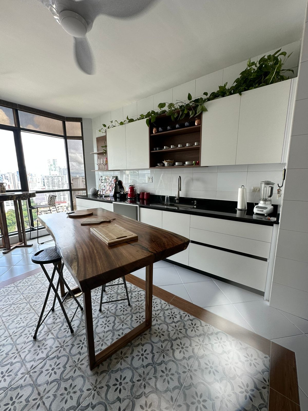En esta ocacion se nos presentó un cliente que necesitaba modernizar el espacio mas "concurrido y aburrido de su Casa" (palabras textuales) XD... Para que su esposa no sintiera que estaba en casa de la abuelita, nos encantó porque jugamos con la elegancia de la madera sellada para enmarcar un pequeño mesón que daba inicio a un proyecto exigente, Blanco alto brillo para las puertas superiores, para las puertas inferiores colocamos Melamina en tono grafito para que el juego de tonos hiciera contraste entre el acero de los accesorios y los tonos del porcelanato del piso, por último un Cuarzo Calacatta de Vetas claras, para dar ese detalle de lujo a este gran espacio