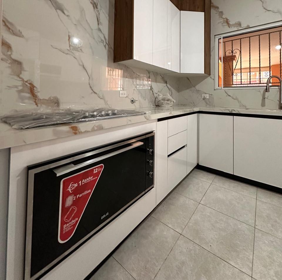 Acá tuvimos que adaptar uno de los hornos mas grandes que habiamos visto (Ja ja) Ilena necesitaba Claridad y le encantó una cubierta ultra Compacto Calacatta Gold, cuando eres exigente, necesitas Calidad y que los materiales sean los mejores, con Blanco Alto brillo y detalles en negro lo logramos, quedó mega Enamorada, estamos preparando un nuevo proyecto en la comuna gracias a ella, Besitos
